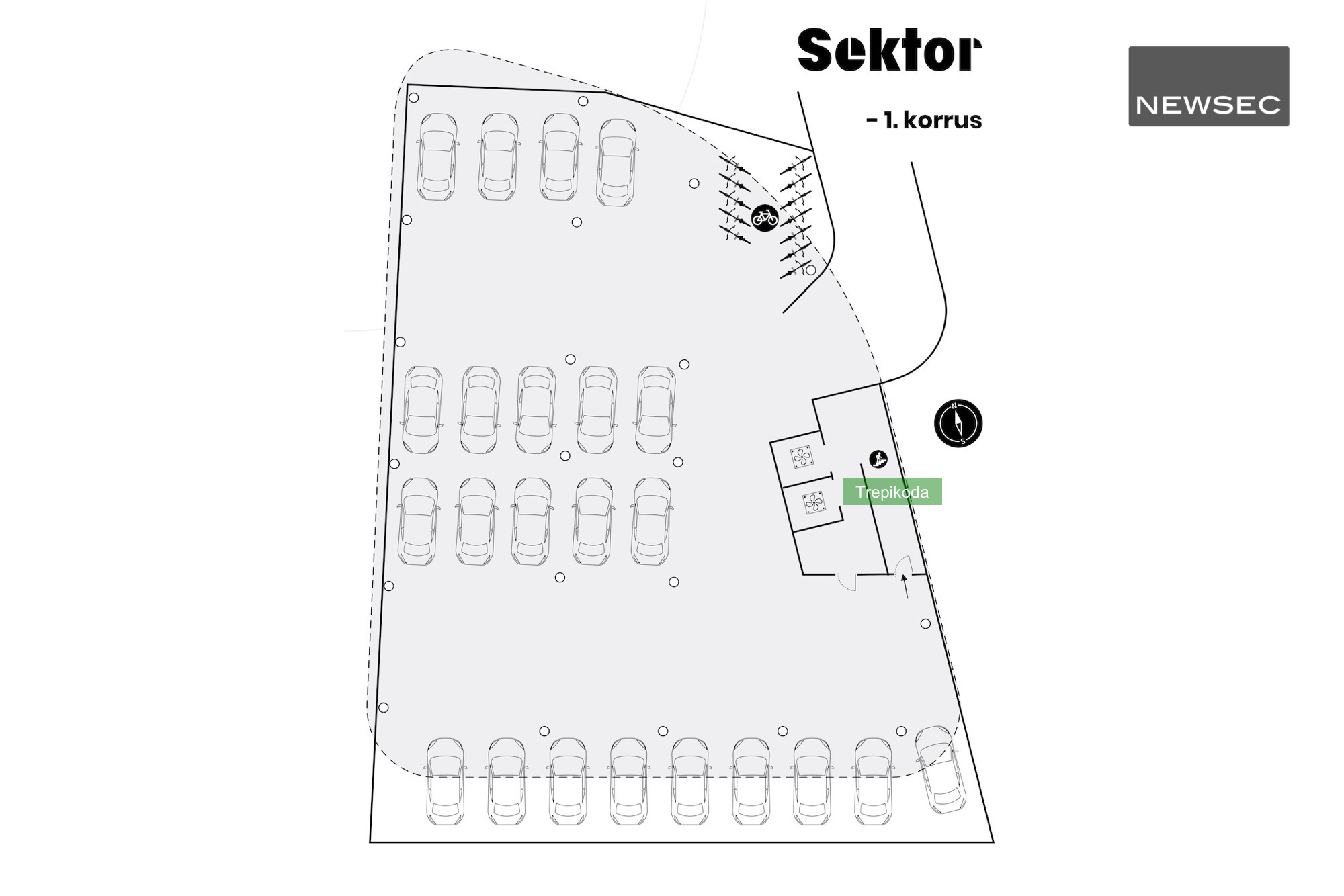 Mugav ja turvaline jalgrattaparkla on projekteeritud nii hoone peasissepääsu juurde kui ka keldrikorrusele.