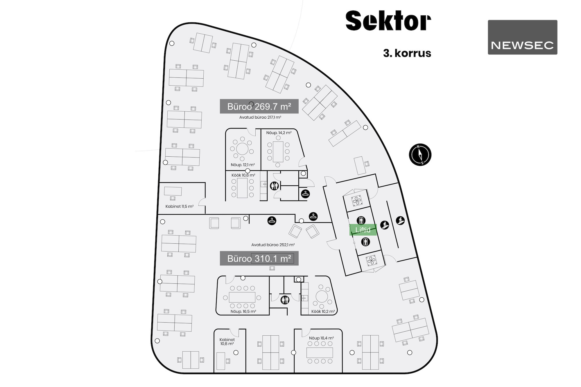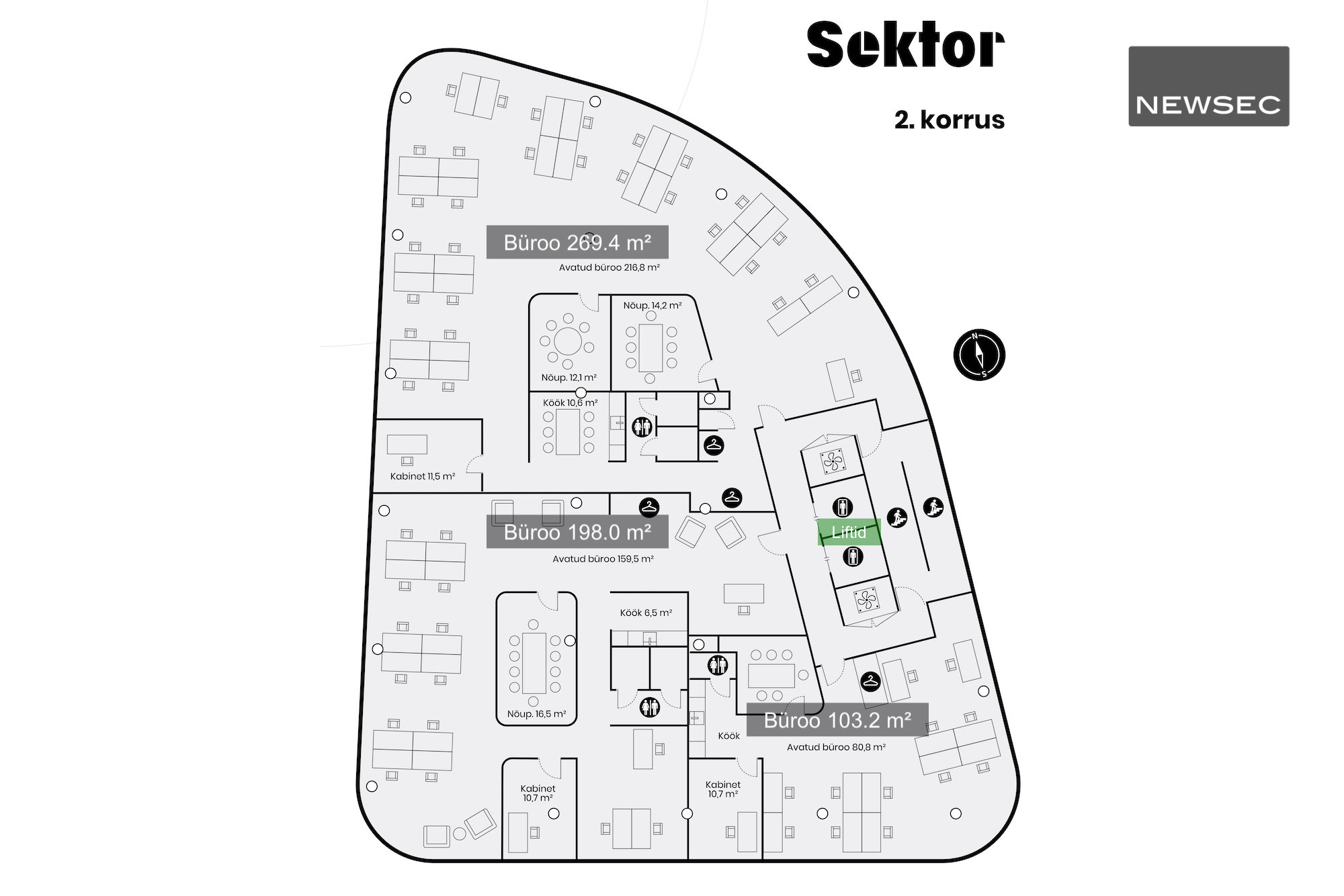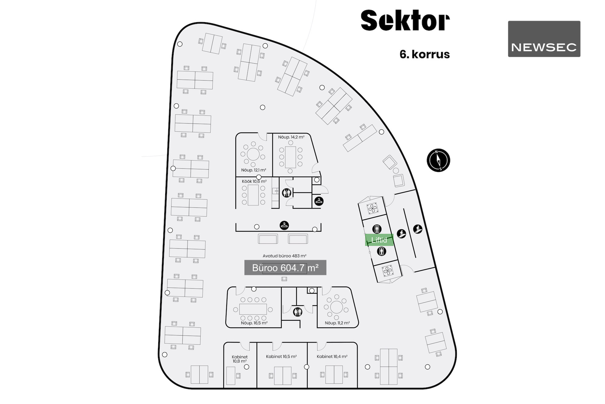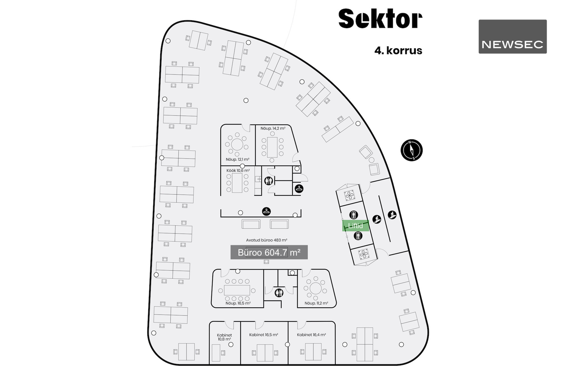 Uue hoone büroopindade ruumiplaneering võimaldab tekitada funktsionaalset tööpinda – avatud ruumid, privaatsed kabinetid, erineva suurusega koosoleku ja tiimitöö ruumid, kõneboksid või eraldi nurgakesed, kus segamatult tööd teha.